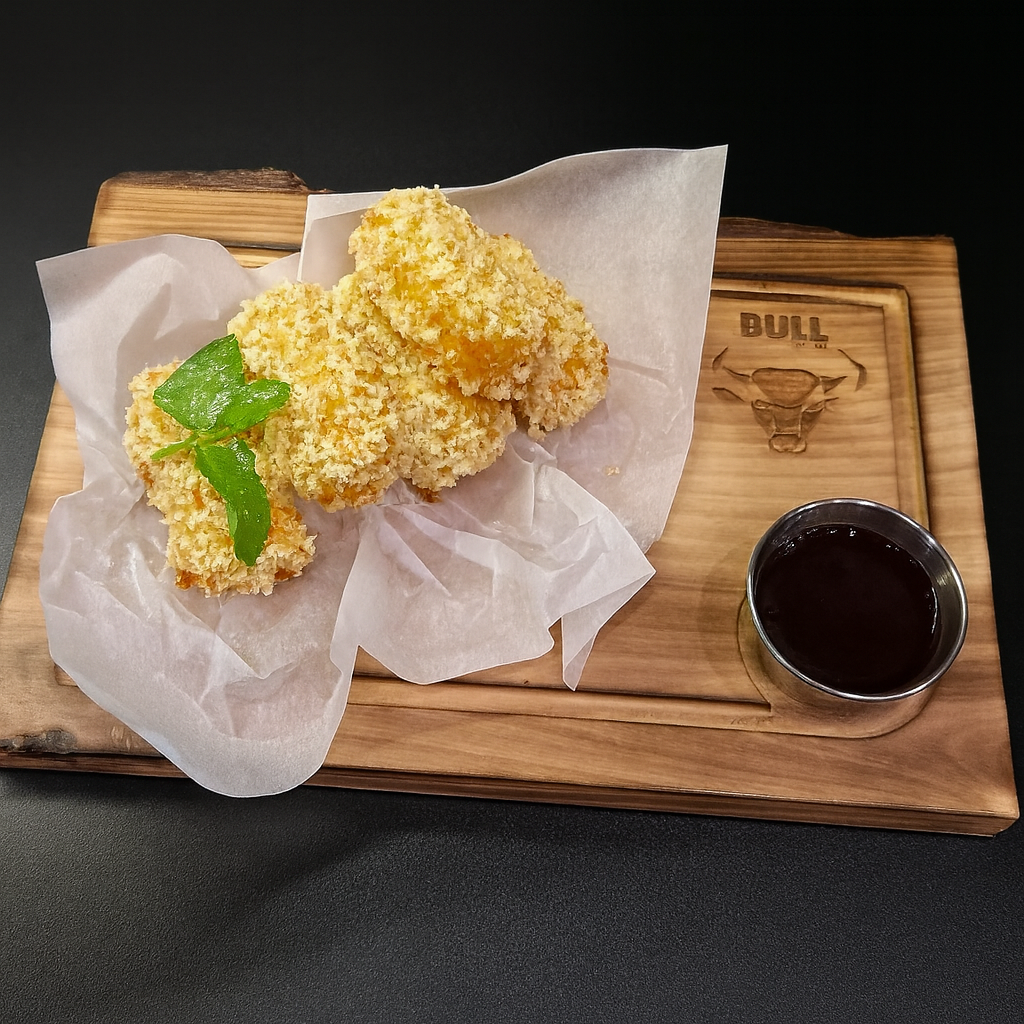 Сир у хрусткій скоринці з соусом із ягод та м`яти